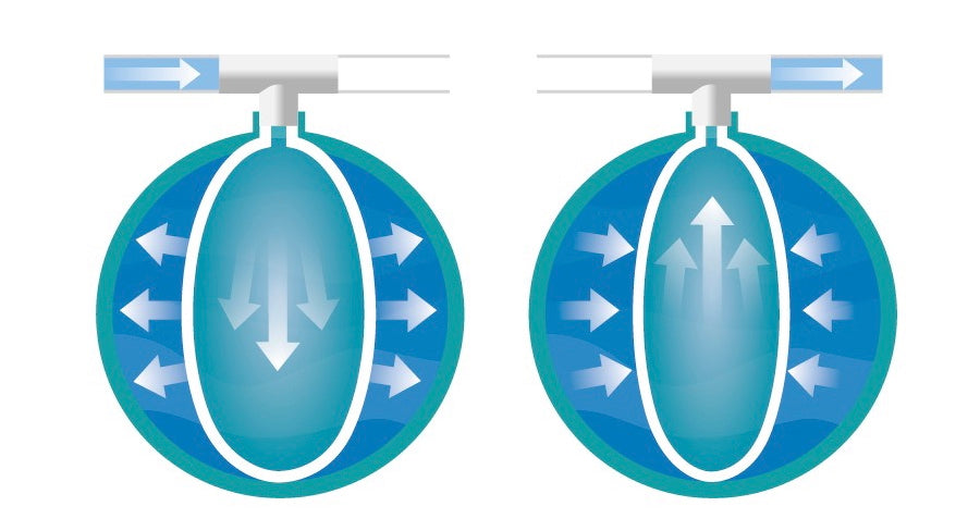 Significantly more compact than traditional air-captive systems. The large volume of air in the tank is no longer necessary, reducing the space required for installations by 35-50%.